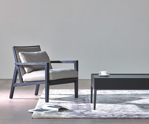 Reminiscent of the Chinese character “丛” (FLORA), the Flora lounge chair conveys a perfect harmony of geometric simplicity and luxurious comfort. An abstract homage to the Chinese culture, the solid wood frame available in Natural Oak, or Grey Oak, supports a high-resilient foam seat and an optional feather down filled lumbar cushion. Available in your choice of fabric or leather. Also available in dining chair variations.